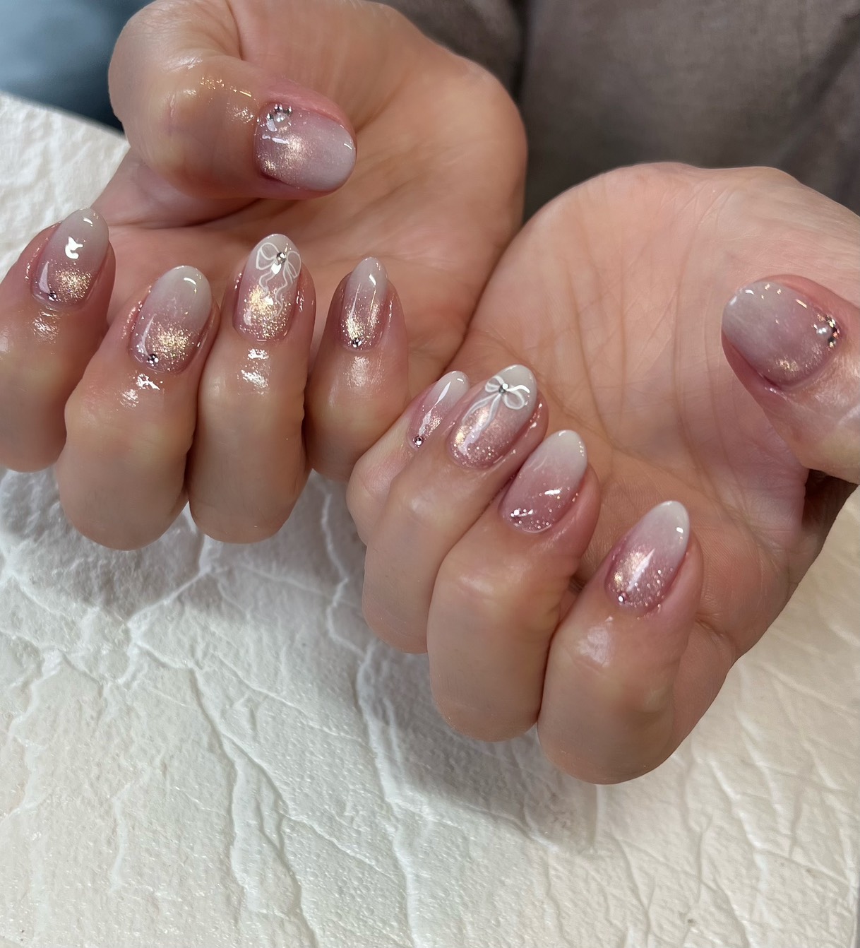 シアーカラーやラメを組み合わせた柔らかい雰囲気のネイルは大人かわいい印象になります✨