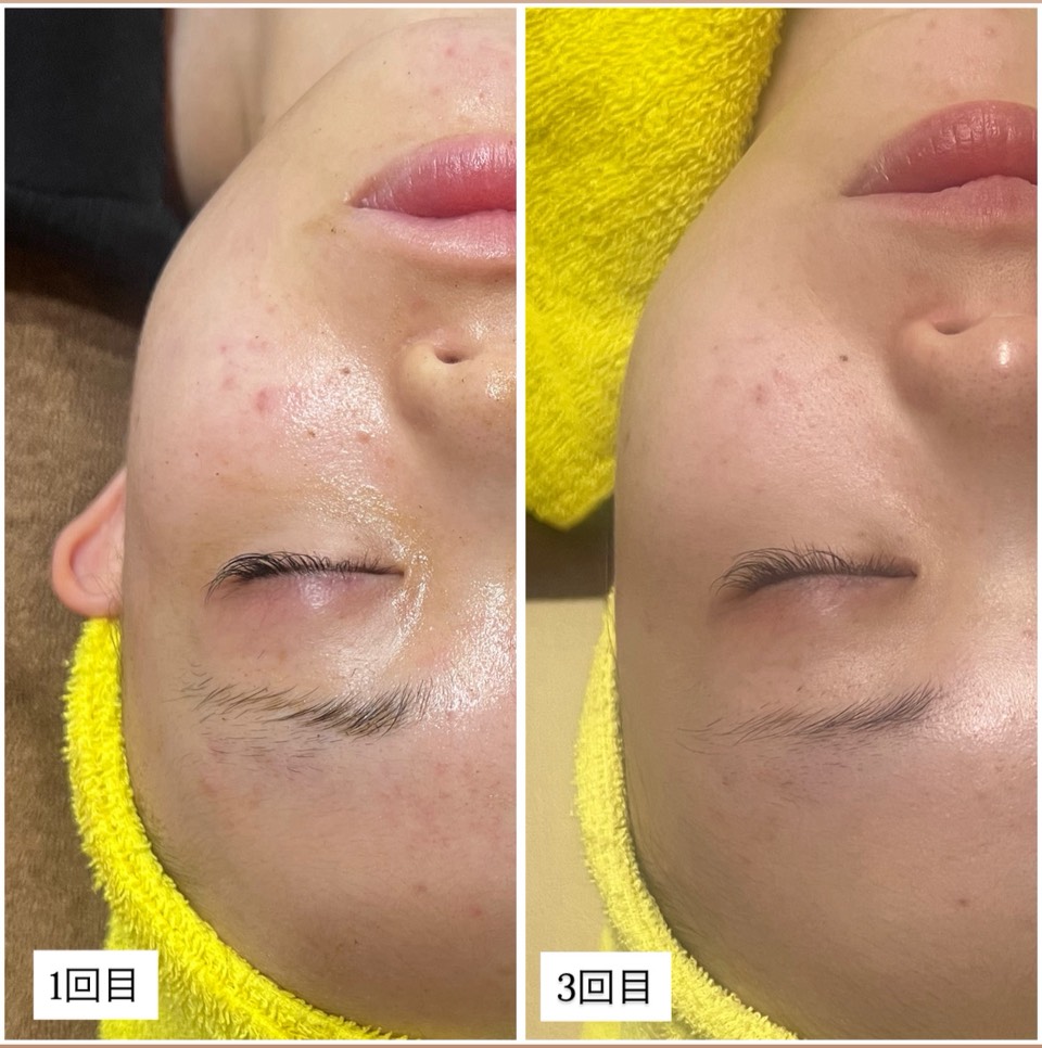回数を重ねることで徐々に改善され、3回目頃から肌の安定感やツヤ感が出てくるのが特徴です!